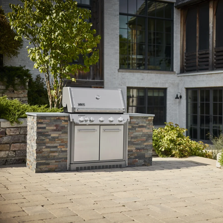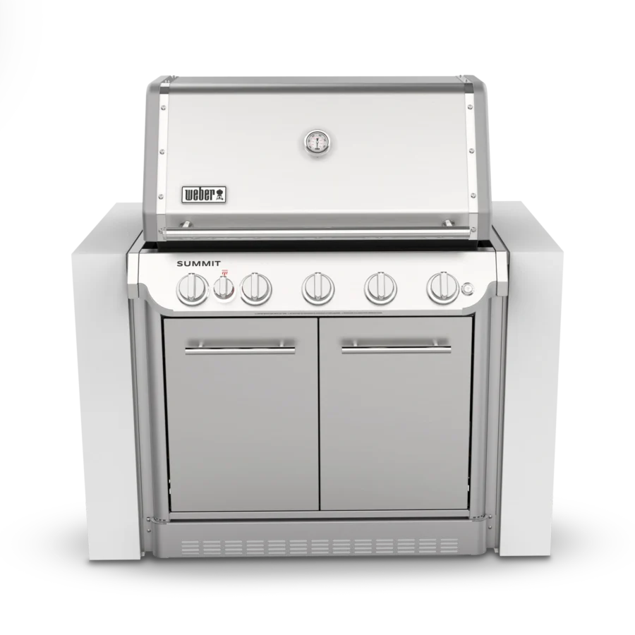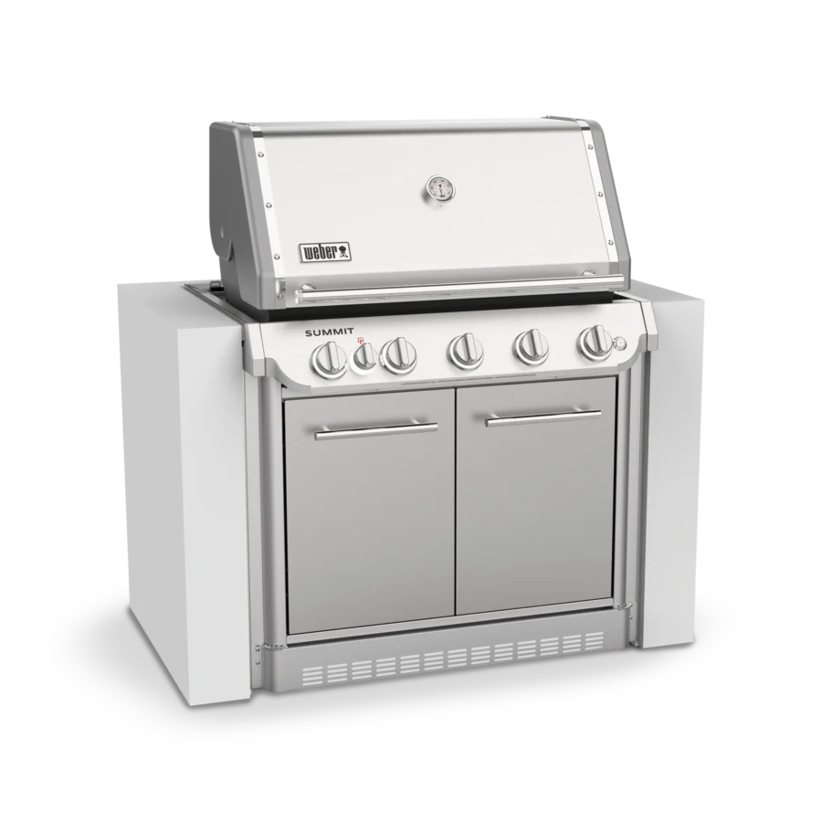 Step up to the Summit Built-In – it’s sure to turn heads in your outdoor kitchen or entertaining area. It’s our top-of-the-line gas barbecue, reinvented with features that expand your outdoor cooking techniques and enable you to entertain at a higher level. The top-down, high-heat infrared burner directs blazing heat onto the top of food, producing an edge-to-edge caramelised crust that seals in flavour. Light up the stainless-steel smoker box to give your food a low-and-slow, smoky boost and break out of your routine with the large rotisserie. This 5 burner BBQ is equipped with the WEBER CRAFTED cooking grills and frame kit that lets you transform your BBQ into a griddle, pizza oven, wok, and more with a variety of custom-fit accessories (sold separately). Bring the kitchen outside and create delicious food that makes every gathering memorable.