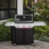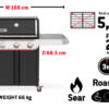 Experience powerhouse performance and precision with the upgraded Weber® Genesis® EP-335 Gas Barbecue. This premium 3-burner outdoor entertaining barbecue is perfect for large families or anyone looking for plenty of space, power and cooking versatility. Featuring a Sear Zone, side burner, grill locker, and Weber Crafted® griddle, it’s sure to be the centrepiece of your backyard. An ultra-hot Sear Zone, powered by two dual-row PureBlu™ burners, reaches ~400ºC for impressive restaurant-quality searing. The spacious cooking area heats up fast and evenly, thanks to the premium PureBlu™ burners. Heavy-duty porcelain-enamelled, cast-iron cooking grills flip over to fit Weber Crafted® cookware, giving you ultimate cooking versatility by transforming your barbecue with a griddle, pizza stone, veggie basket, and more . Plus, with Weber Works™ interchangeable accessories that drop in or snap onto the side tables, you can store, carry, prep, and serve seamlessly.