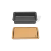 “Prep, store, and carry food to the barbecue like a pro with the Weber Works™ Basin with Cutting Board Lid. This handy set includes a food-safe container with a lid that doubles as a two-sided cutting board. Marinate and store meats or prepped ingredients in the container, then transport them securely to the barbecue. Use one side of the cutting board for prep then flip it over for carving and serving. The basin and cutting board are designed for Weber Works™ compatible barbecues, griddles, smokers, stands, and tables.